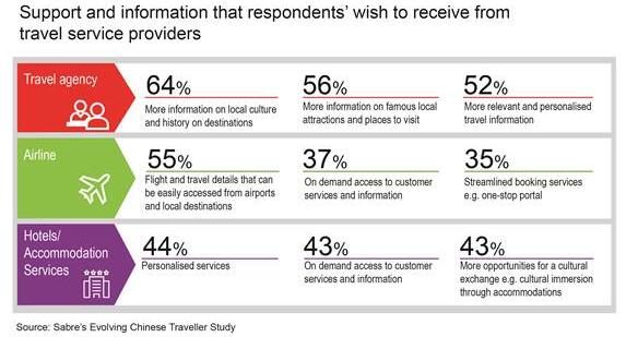 However, having more control over travel plans does not come at the expense of external support and trip guidance offered by travel providers and agents. In fact, many Chinese travelers (78%) still welcome and value support from friends, relatives and travel service providers.